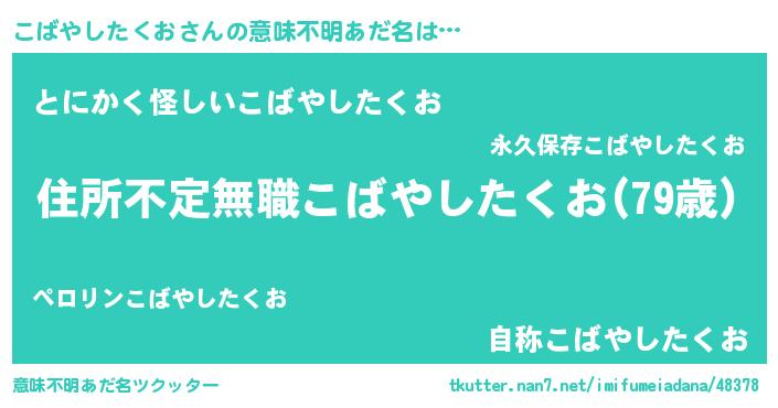 | 欧米人風あだ名 | 『ダレノガレこばやしたくお』 |