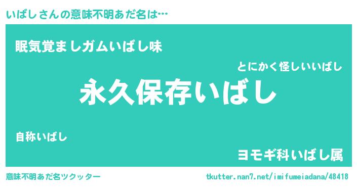 | ヘコむあだ名 | 『いばし(笑)』『いばを』『酢こんぶ』 |