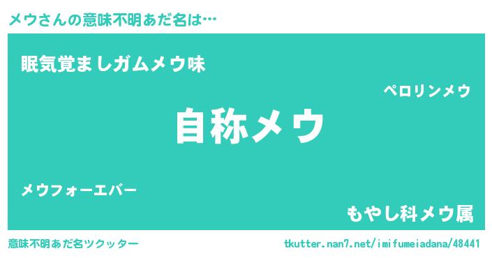 | ヒーロー風カッコイイあだ名 | 『ウルトラ戦士メウ』『慈愛の使者メウ』 |