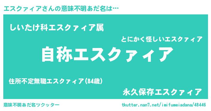 | 男性向けラノベタイトル風あだ名 | 『エスクァィアに滅ぼされるだけの簡単なお仕事です』 |