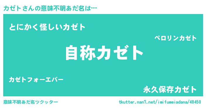 | ファンタジー風あだ名 | 『カークカゼラー』『ゼカゼトゥ』 |