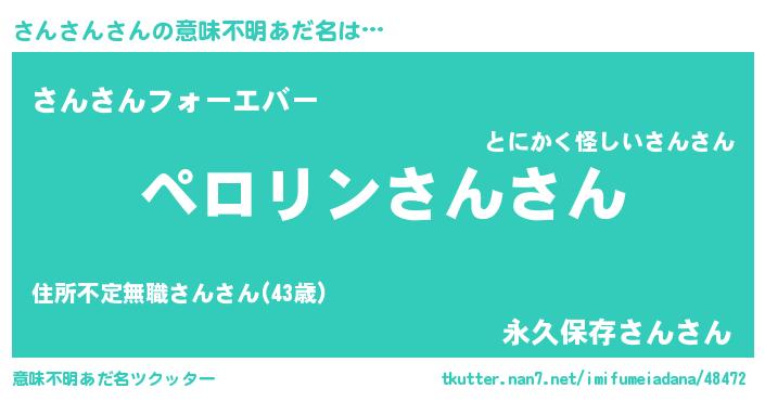 | 男性向けラノベタイトル風あだ名 | 『さんさんの憂鬱』 |