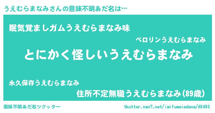| 胡散臭い通販商品みたいなあだ名 | 『伝統あるサプリメント…その名も「うえむらまなみ」』 |