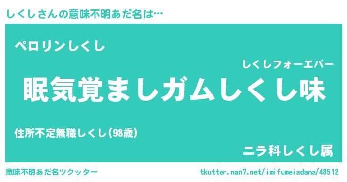 | ヒーロー風カッコイイあだ名 | 『正義の使者しくし』『スーパーシクシ』 |