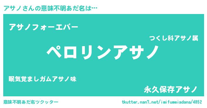 | ファンタジー風あだ名 | 『アサフェル』『エターナルアサノー』 |