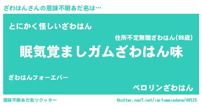 | ピコ太郎風あだ名 | 『ザザ太郎』『ザワ六郎』『ザコ次郎』 |