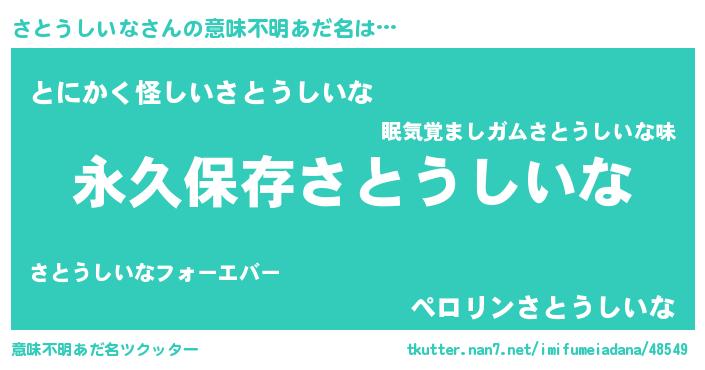 | ヒーロー風カッコイイあだ名 | 『ネオサトウシイナ』『炎刃騎士サト』 |