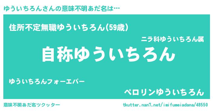 | 男性向けラノベタイトル風あだ名 | 『Re:ゆういちろんから始める異世界生活』 |