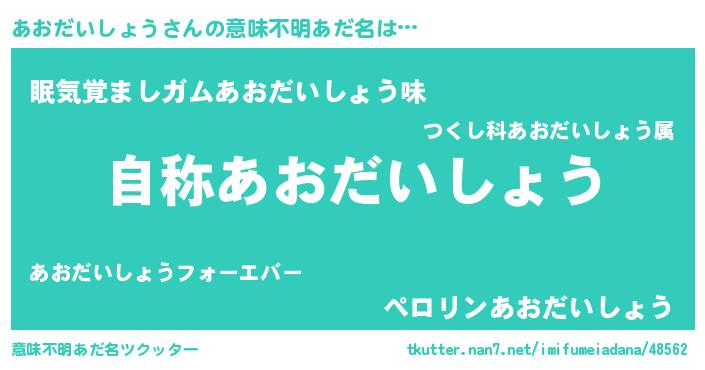 | 男性向けラノベタイトル風あだ名 | 『Re:あおだいしょうから始める異世界生活』 |