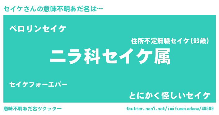 | 肩書あだ名 | 『セイケ上級大将』『セイケCEO』 |