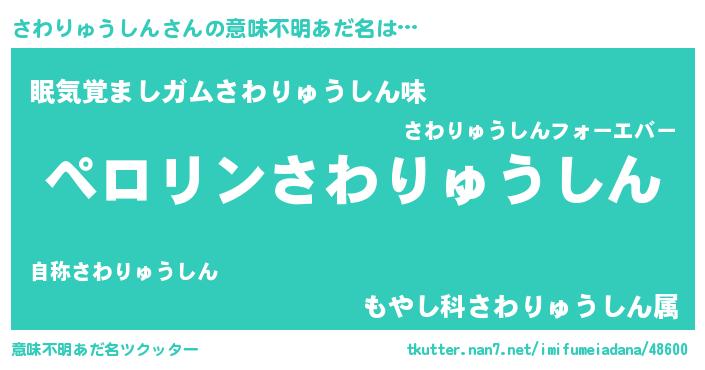 | 女子向けラノベタイトル風あだ名 | 『(仮)さわりゅうしんのやんごとなき事情』 |