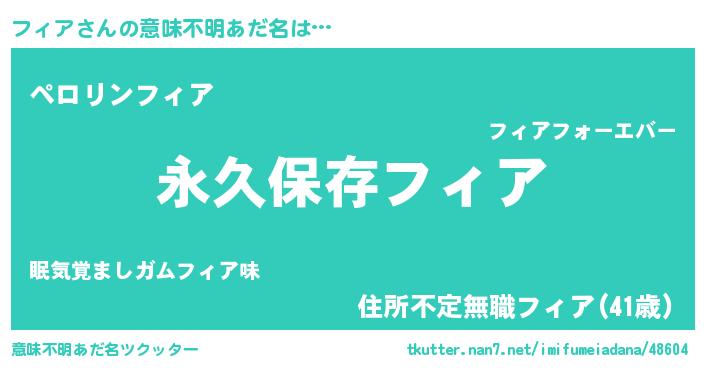 | ヘコむあだ名 | 『フィア(小並感)』『フィにゅー』 |