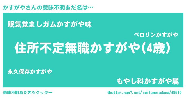 | ヒーロー風カッコイイあだ名 | 『仮面カスダー』『正義の使者かすがや』 |