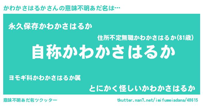 | 女子向けラノベタイトル風あだ名 | 『かわかさはるかなんてお断りですっ。』 |
