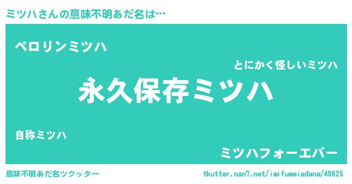 | 女子向けラノベタイトル風あだ名 | 『異世界で失敗しない100のミツハ』 |