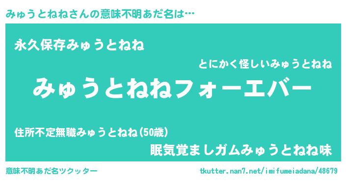 | ファンタジー風あだ名 | 『エターナルミュウトネネー』 |