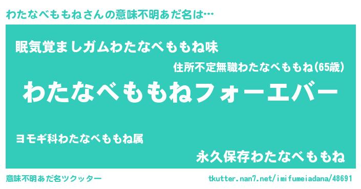 | 胡散臭い通販商品みたいなあだ名 | 『世界が平和になる高級そうな壺…その名も「わたなべももね」』 |