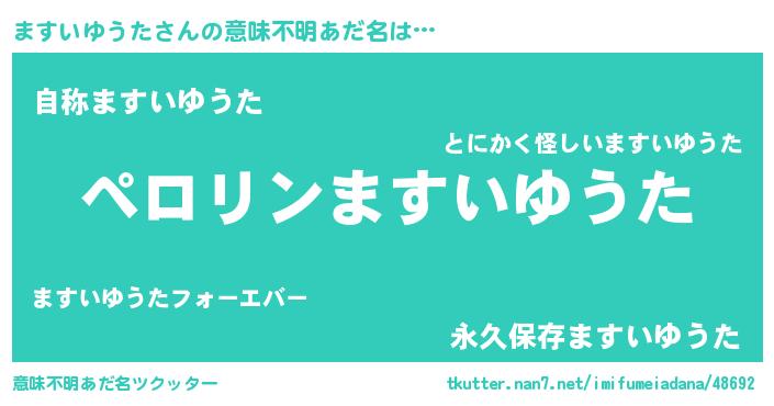 | 胡散臭い通販商品みたいなあだ名 | 『億万長者になれる霊験あらたかなお札…その名も「ますいゆうた」』 |