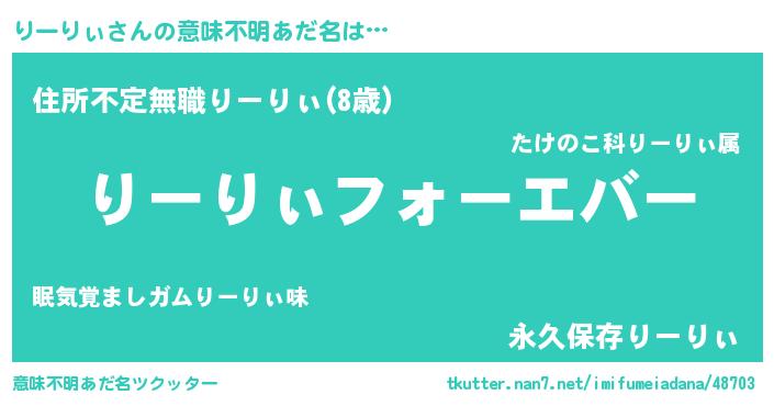 | 欧米人風あだ名 | 『りーりぃクリステル』 |