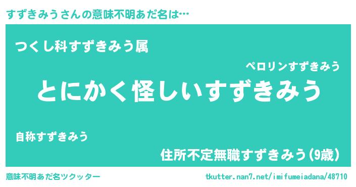 | ポケモン風あだ名 | 『ヒスズキミウ』『スズゴンZ』 |