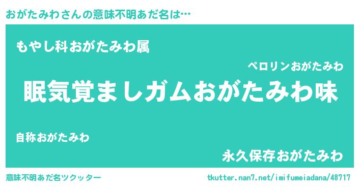 | 胡散臭い通販商品みたいなあだ名 | 『100人中100人が認めたマグネット磁石…その名も「おがたみわ」』 |