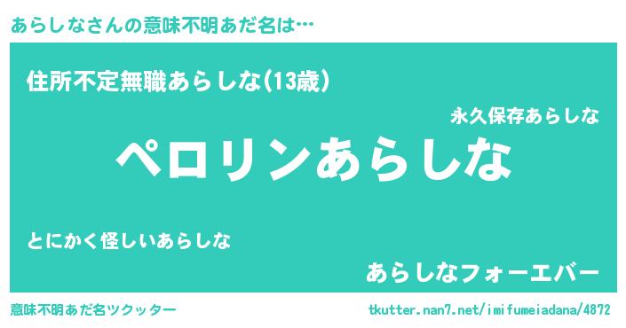 | 胡散臭い通販商品みたいなあだ名 | 『必ず成功する霊験あらたかなお札…その名も「あらしな」』 |