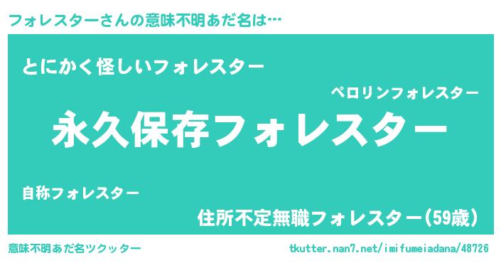 | 男性向けラノベタイトル風あだ名 | 『フォレスターという概念が存在しない退屈な世界 』 |