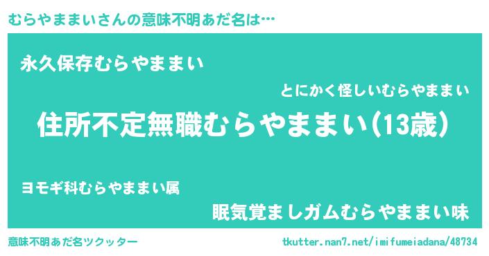 | 男性向けラノベタイトル風あだ名 | 『この素晴らしい世界にむらやままいを!』 |