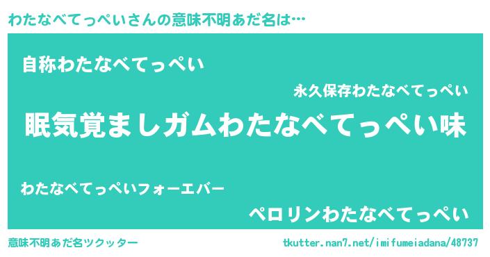 | 男性向けラノベタイトル風あだ名 | 『ノーゲーム・ノーワタナベテッペイ』 |