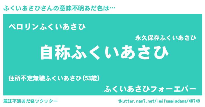 | 肩書あだ名 | 『ふくいあさひ総統』『ふくいあさひCEO』 |