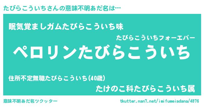 | 胡散臭い通販商品みたいなあだ名 | 『億万長者になれる水晶球…その名も「たびらこういち」』 |