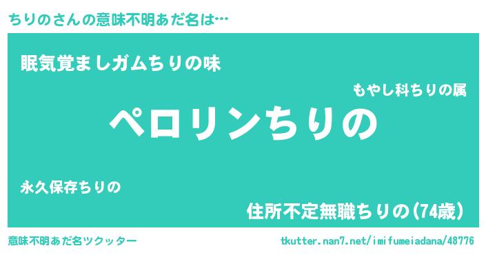 | ヘコむあだ名 | 『ちりにー』『ちりの(遠い目)』 |