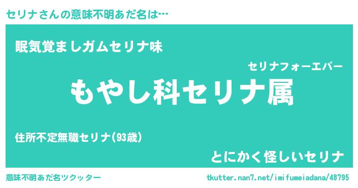 | ヘコむあだ名 | 『セリお』『豆乳』『セリナ(小並感)』 |