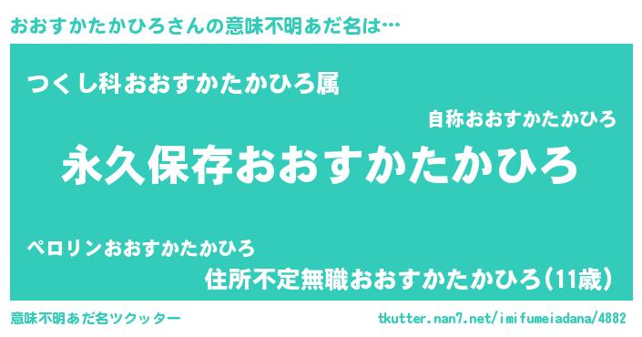 | 胡散臭い通販商品みたいなあだ名 | 『来世でも幸せになれる健康食品…その名も「おおすかたかひろ」』 |