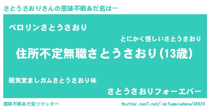 | 男性向けラノベタイトル風あだ名 | 『この素晴らしい世界にさとうさおりを!』 |
