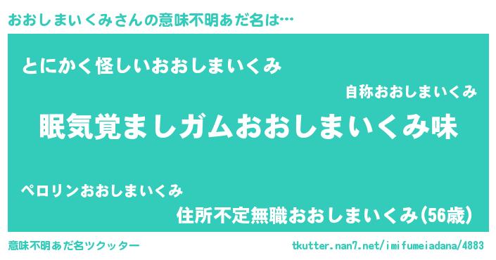 | 胡散臭い通販商品みたいなあだ名 | 『お金では代えられないマグネット磁石…その名も「おおしまいくみ」』 |