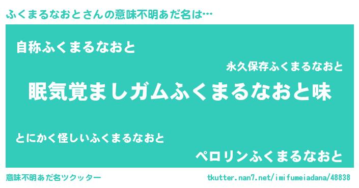 | ヘコむあだ名 | 『ふくもー』『ふくまるなおと(震え声)』 |