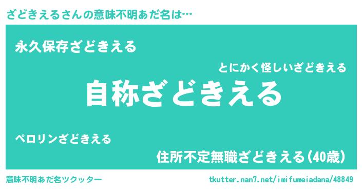 | 男性向けラノベタイトル風あだ名 | 『Re:ざどきえるから始める異世界生活』 |