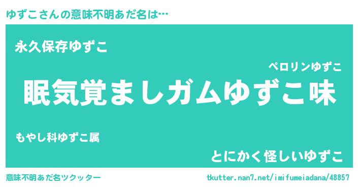 | ポケモン風あだ名 | 『ユズゴンZ』『ユックウザ』 |