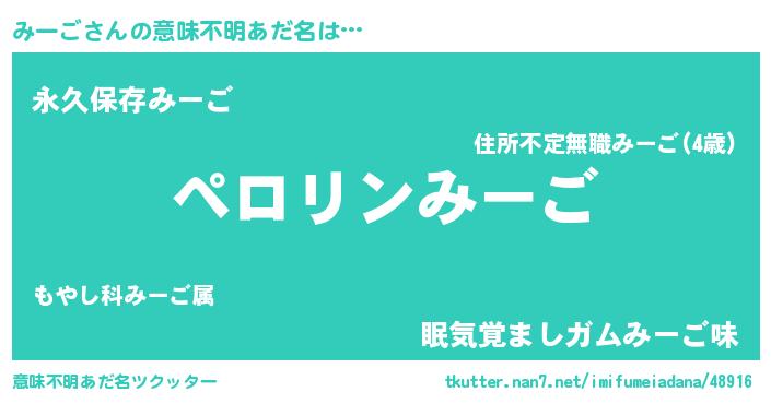 | 胡散臭い通販商品みたいなあだ名 | 『モテモテ間違いなし霊験あらたかなお札…その名も「みーご」』 |