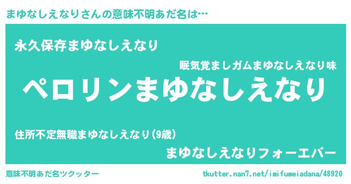 | 胡散臭い通販商品みたいなあだ名 | 『億万長者になれる水晶球…その名も「まゆなしえなり」』 |