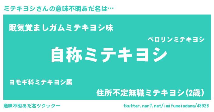 | ヘコむあだ名 | 『ミテにー』『ミテキヨシ(小並感)』 |