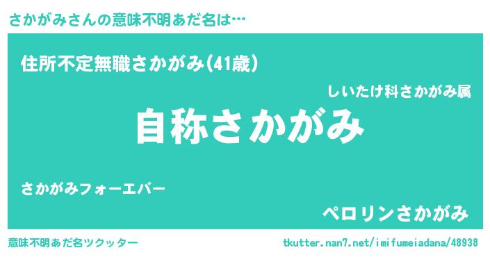 | 欧米人風あだ名 | 『さかがみ・ステッグマイヤー』 |
