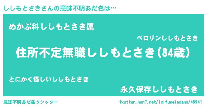 | 男性向けラノベタイトル風あだ名 | 『魔弾の王とししもとさき』 |