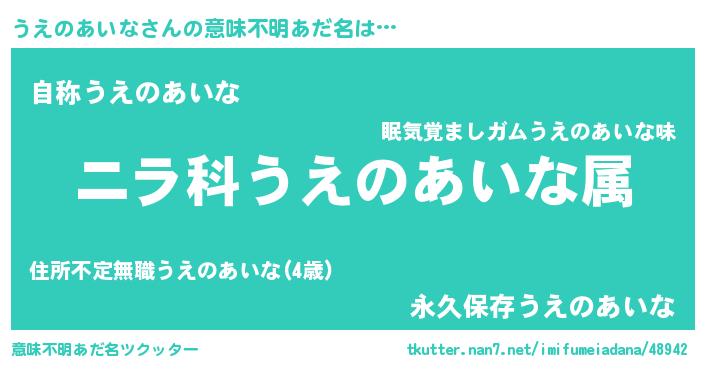 | 肩書あだ名 | 『うえのあいな中将』『うえのあいな総統』 |