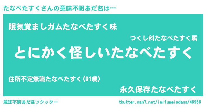 | 胡散臭い通販商品みたいなあだ名 | 『信頼と実績のペンダント…その名も「たなべたすく」』 |