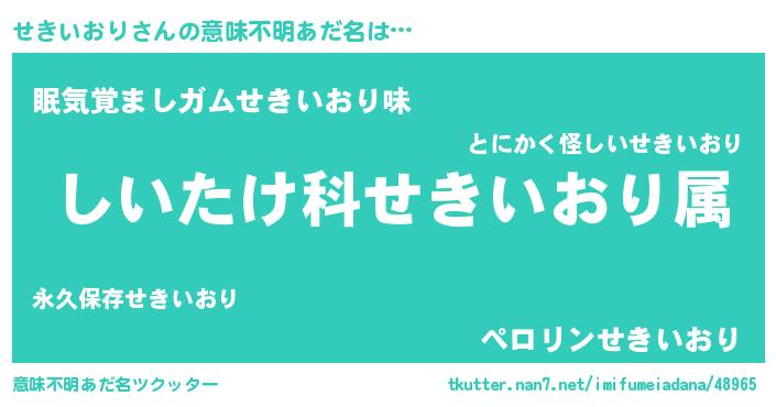 | 料理風あだ名 | 『せきいおりごはん』 |