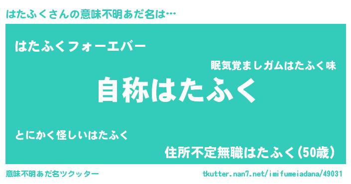 | 女子向けラノベタイトル風あだ名 | 『はたふくなんてお断りですっ。』 |