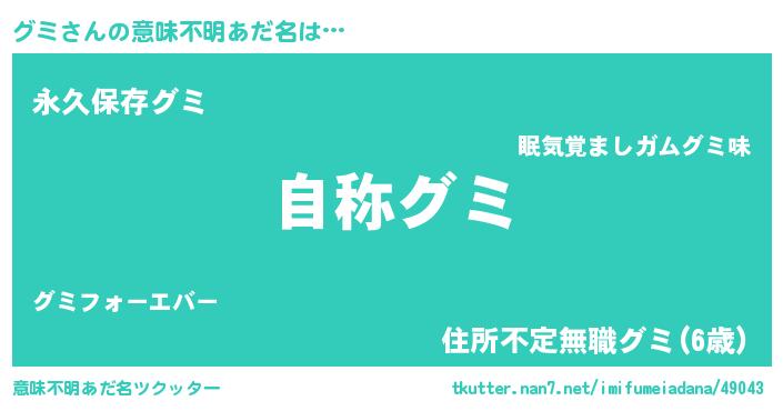 | ヘコむあだ名 | 『グミ(遠い目)』『豆乳』『グミお』 |