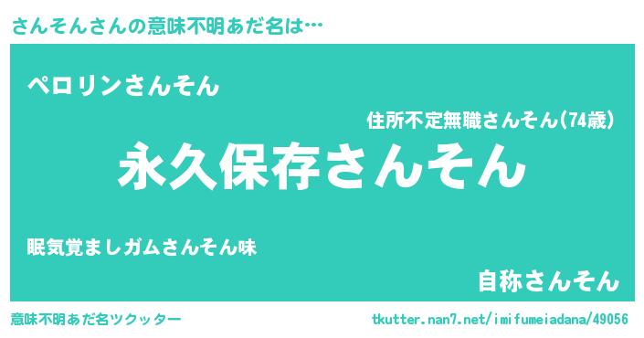 | 胡散臭い通販商品みたいなあだ名 | 『来世でも幸せになれる水素水…その名も「さんそん」』 |